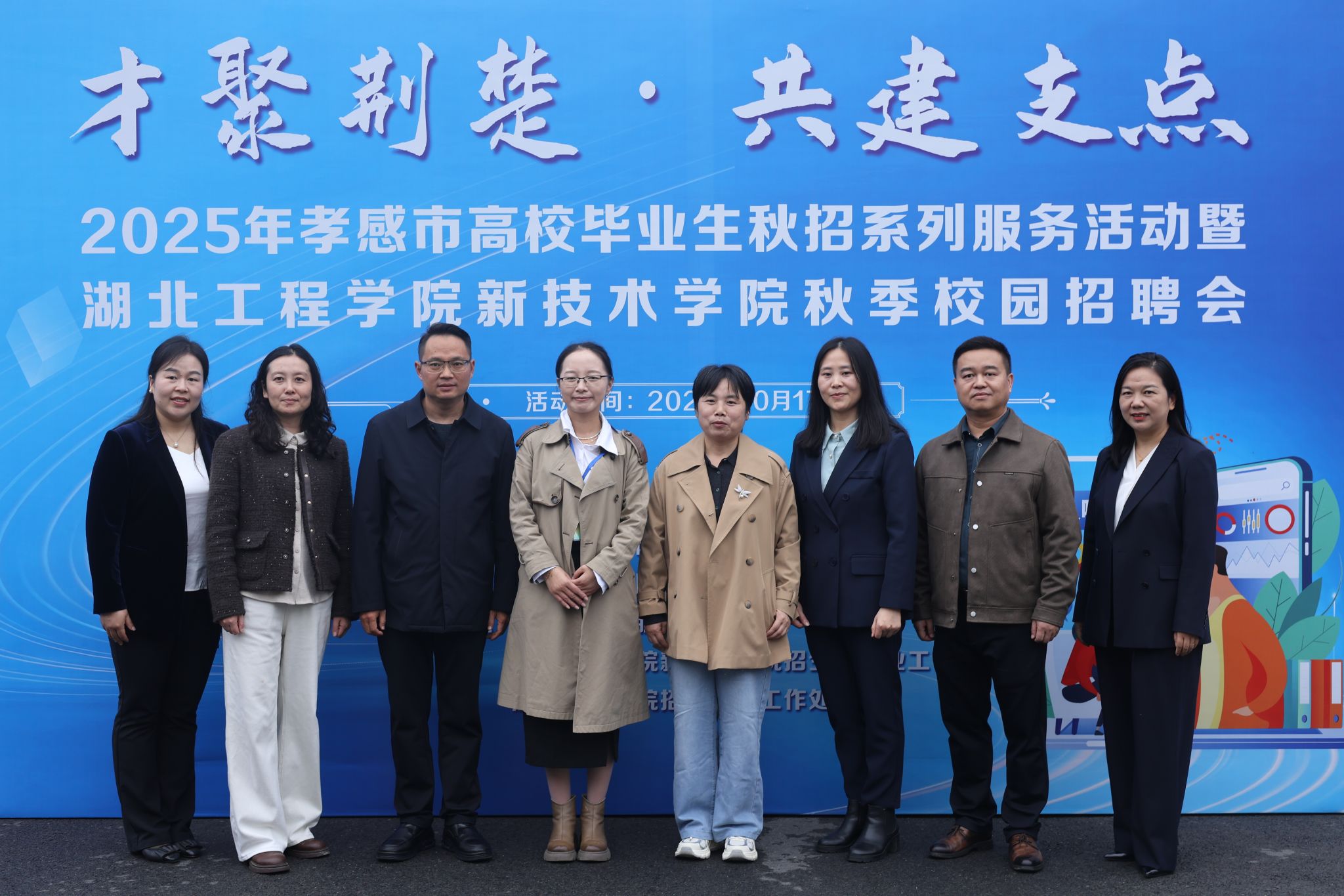本网讯 10月17日,湖北工程学院新技术学院联合孝感市人力资源和社会保障局,在学校科技楼广场举办2025年“才聚荆楚 共建支点”秋季校园招聘会。孝感市人才服务局副局长李俊英、我校副院长郭勇在学校相关职能部门和教学系负责人陪同下,深入现场了解毕业生求职动态与企业招聘需求。