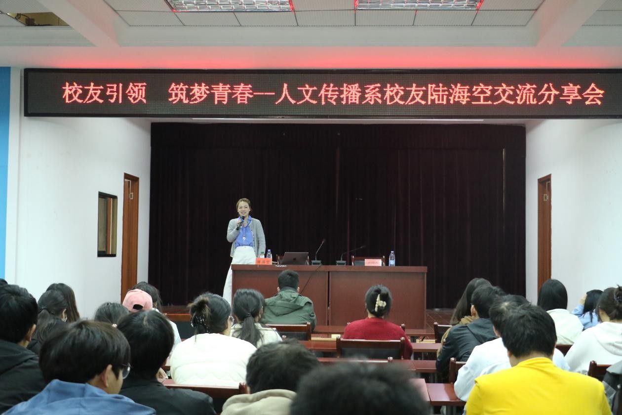 本次分享会特别邀请到我系2013届广告学专业杰出校友陆海空女士担任主讲嘉宾。分享现场,陆海空校友以《广告与新媒体领域的机遇探索及职业规划指南》为主题,结合自身从校园到职场的完整成长轨迹,为学弟学妹们献上了一场干货满满的深度分享。她温情回望大学求学岁月,细数在校期间的成长点滴与难忘瞬间,讲述了自己努力考入中国地质大学攻读硕士学位的奋进历程,并毫无保留地分享了自己深耕头部上市集团十余年来的行业洞察、实战经验与人生感悟。